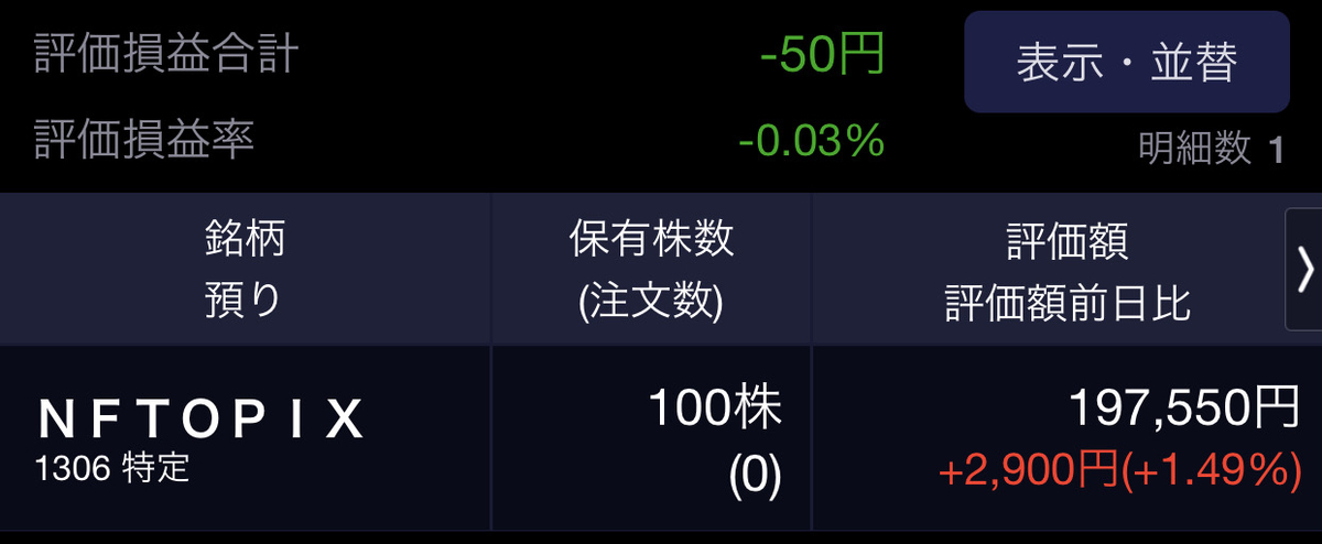 最後に以前のブログで書いていた証券コード1306を本日の日本株市場の寄り付きで購入いたしました。